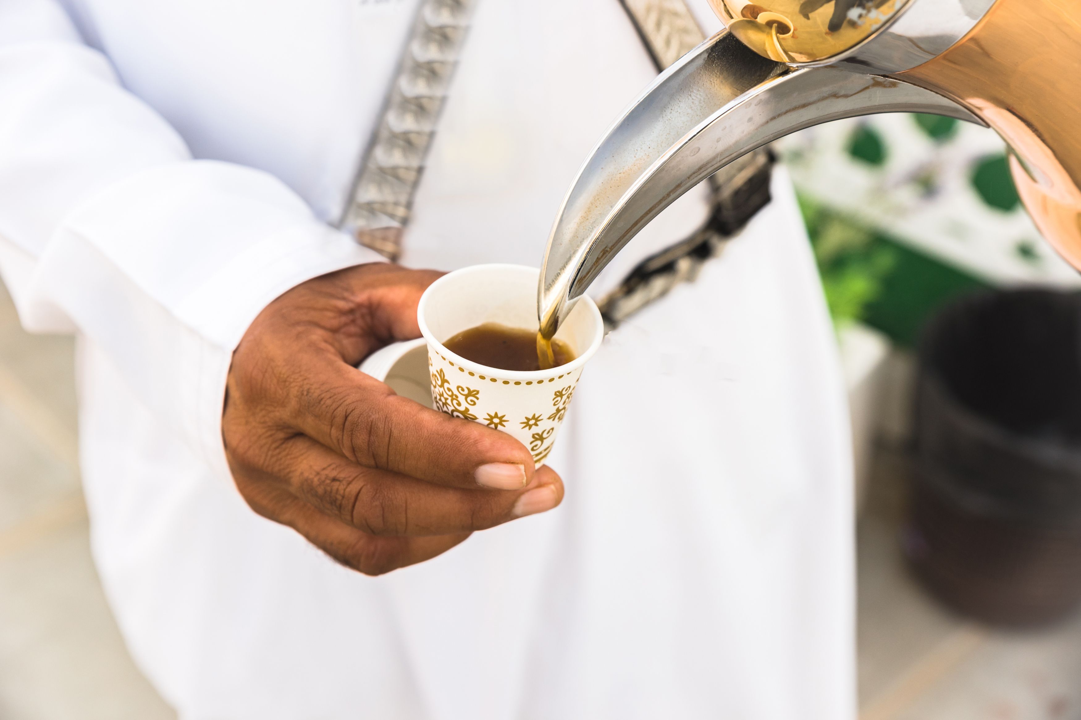 Serving Arabic coffee to guests is a cultural element of hospitality in Arab and Emirati society and a symbolic act of generosity. The serving of Arabic coffee is guided by the elaborate etiquette of the server, the guest and the host.